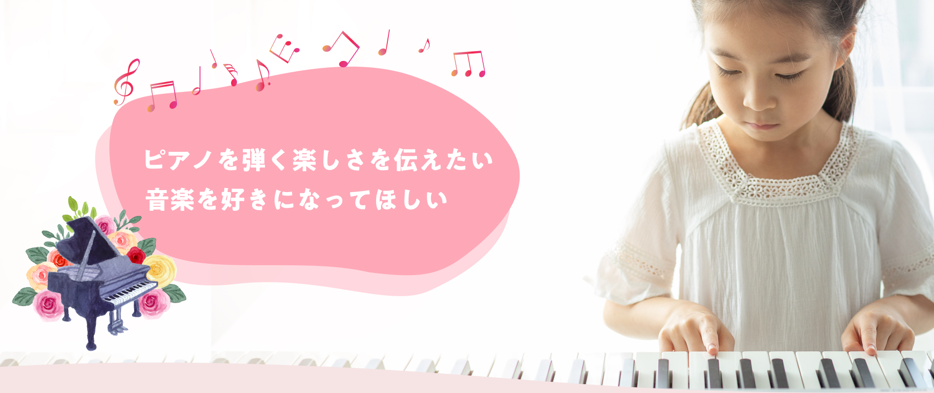 ピアノを弾く楽しさを伝えたい、音楽を好きになってほしいという思いで、一人ひとりのペースに合わせて丁寧に指導しています。